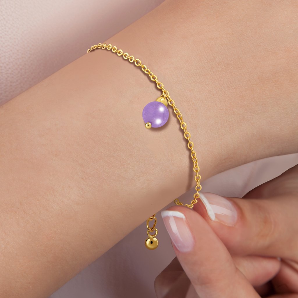 It is made of special brass for fine jewelry and 18K gold-plated of high wear resistance. It fits 17 cm, 18 cm and 19 cm in length. The chain measures 2,8 mm thick. It is formed by an 8 mm amazonita.