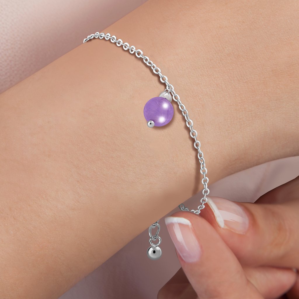 It is made of sterling silver 925. It fits 17 cm, 18 cm and 19 cm in length. The chain measures 2,2 mm thick. It is formed by an 8 mm amazonita.