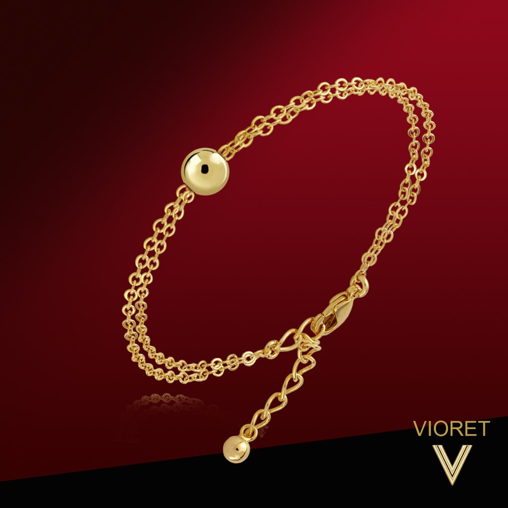 It is made of sterling silver 925. It adjusts to 16,5 cm length and 2,3 cm extension.  The chain is 1,7 mm thick. The ball is 5,5 mm of diameter.
