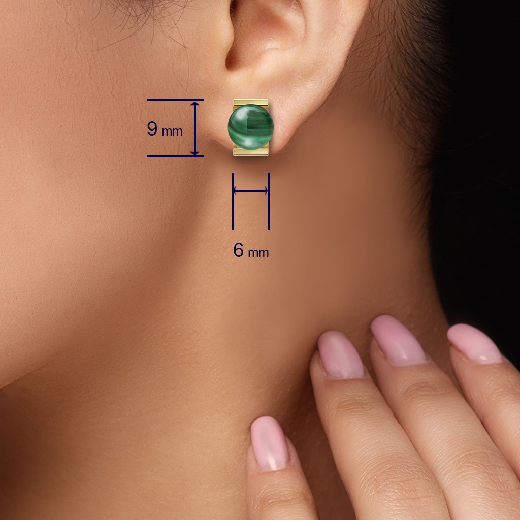 They are made of special brass for fine jewelry and 18K gold-plated of high wear resistance. They measure 9 mm length with 6 mm malachite. Push back clasp.