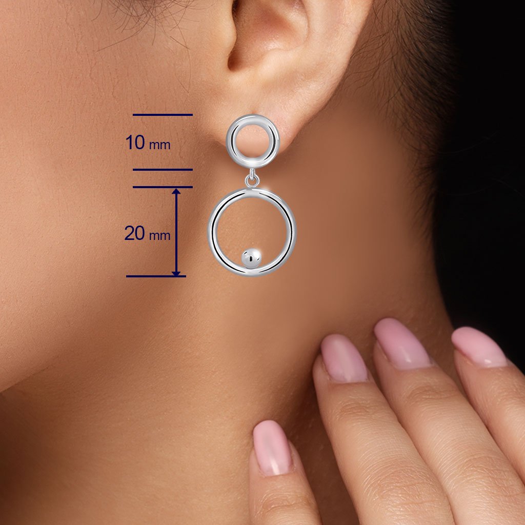 They are made of sterling silver 925. They measure 3 cm length with 1 cm stud. 1,7 cm external hoop diameter and 2 mm metal thread thickness. Push back clasp.
